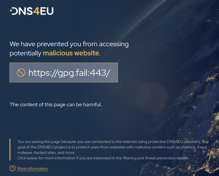 Side note: The EU protective DNS server (<https://www.joindns4.eu/for-public>) thinks that the site /might/ be malicious (see attached screenshot). Didn't look into details, though…